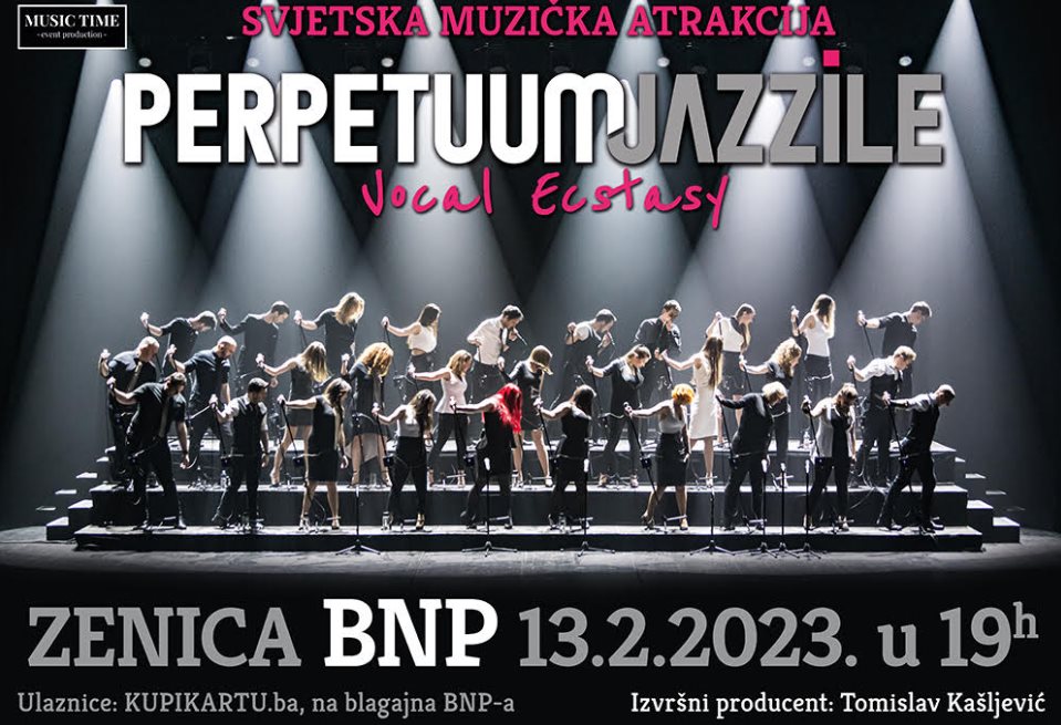Jedan od najvećih i najspektakularnijih vokalnih sastava na svijetu Perpetuum Jazzile 12. februara 2023. godine prvi će put nastupiti u Sarajevu, u BKC-u s početkom u 20 sati i u Zenici 13. februara u BNP-u s početkom u 19. Sati.