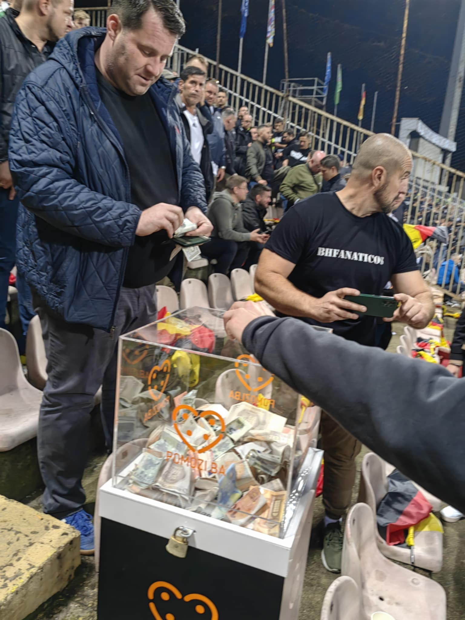 Zahvaljujući navijačima bh. selekcije, sakupljeno je 10.653 KM, za porodice koje su ostale bez svog doma. Također, dugujemo i veliku zahvalnost BHFanaticosima, koji su tokom utakmice protiv Njemačke, transparentom pozvali sve navijače da uzmu telefon u ruke i pozovu humanitarni broj 17039.