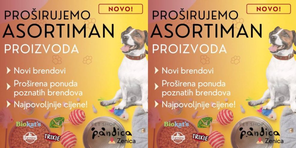 Uzbuđeni smo što možemo najaviti proširenje asortimana u našem pet shopu Pandica na lokaciji Zenica- I sprat shopping centra Zenica City Center.