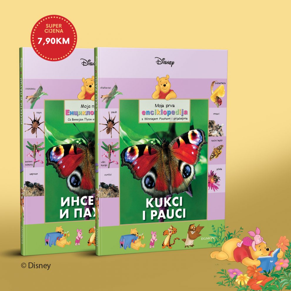 Peta knjiga Enciklopedije Winnie the Pooh – Kukci i Pauci – Kolekcija knjiga Moja prva enciklopedija s Winniejem Poohom i prijateljima namijenjena je djeci predškolskog uzrasta, koja se upoznaju sa životinjama, prirodom i našim planetom. Čini je dvadeset knjiga iz kojih ćete naučiti mnogo toga o morima, okeanima, sisarima, pticama, insektima… Ukratko, zavirit ćete u svaki Kutak planete Zemlje! Ova poučna i zabavna edicija ponudit će odgovore na pitanja djeci koja počinju da istražuju svijet oko sebe.