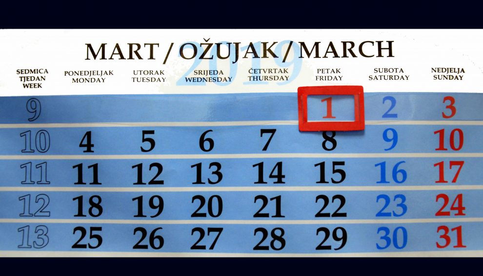 Petak 1. mart neradni dan – Federalno ministarstvo rada i socijalne politike, povodom 1. marta/ožujka – Dana nezavisnosti Bosne i Hercegovine, obavještava da, u skladu sa Zakonom o proglašenju 1. marta/ožujka Danom nezavisnosti Bosne i Hercegovine (“Službeni list RBiH”, broj: 9/95), državni organi, preduzeća i druge pravne osobe ne rade.