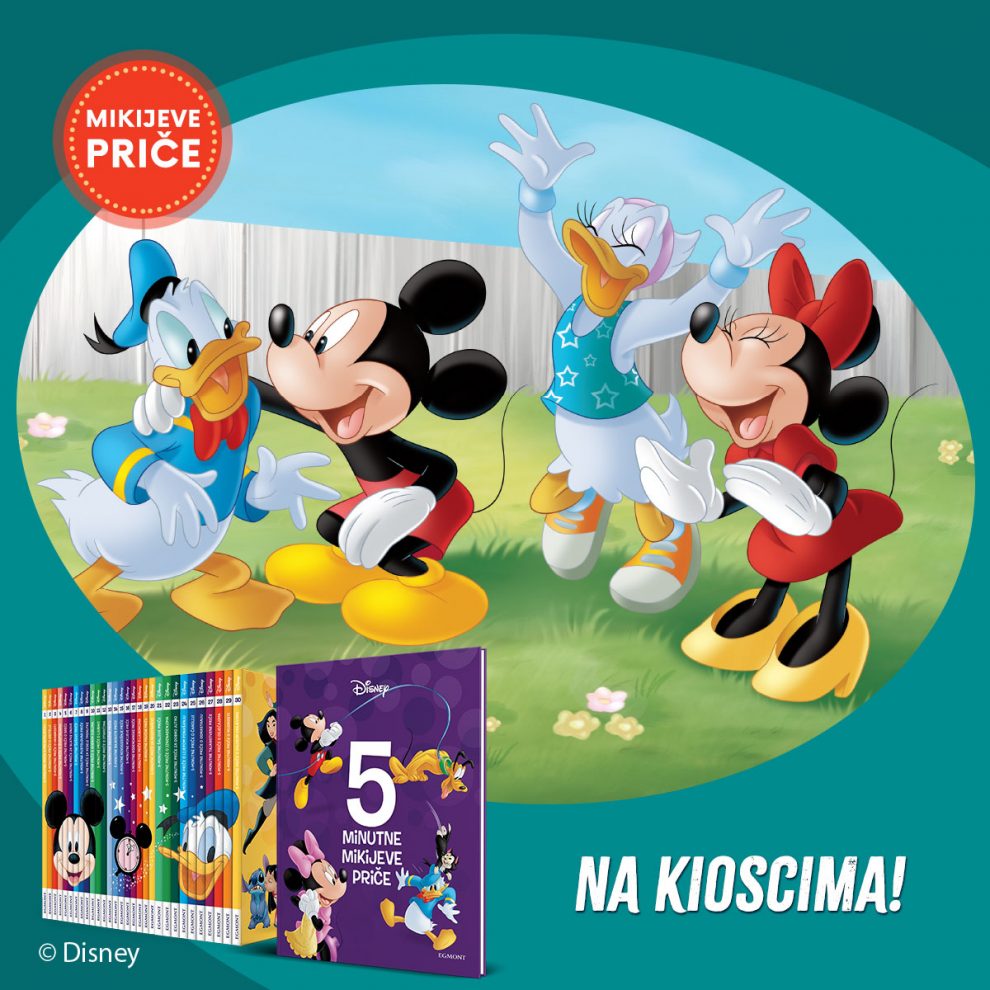 U novoj knjizi Miki će proći kroz pet priča, sa svojim prijateljima i porodicom. Kolekcija petominutne priča donijela je mnogo radosti mališanima. Nadamo se da ćete uživati u izboru novih knjiga. Podijelite sa djecom neku priču o Mikiju koje se sjećate iz vašeg djetinjstva…