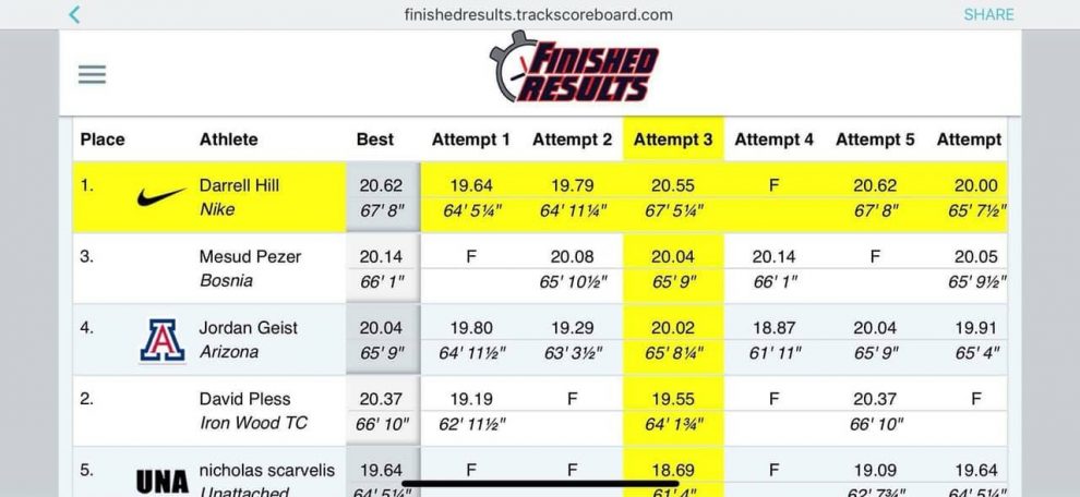 Pezer treći na turniru u Kaliforniji – U okviru priprema u SAD, naš rekorder Mesud Pezer je nastupio na atletskom turniru u kalifornijskom gradu La Jolla. Pezer je bacio hitac dužine 20,14 m što je na kraju bilo dovoljno za treće mjesto u ukupnom poretku.