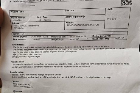 Majka sam 13-godišnjeg dječaka koji pohađa osmi razred Osnovne škole Meša Selimović u Zenici, piše nam na početku obraćanja sugrađanka, majka dječaka koji je, po njenim informacijama, te ljekarskim nalazima, bio žrtva ponovljenog vršnjačkog nasilja.