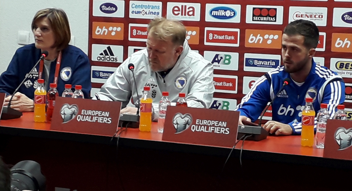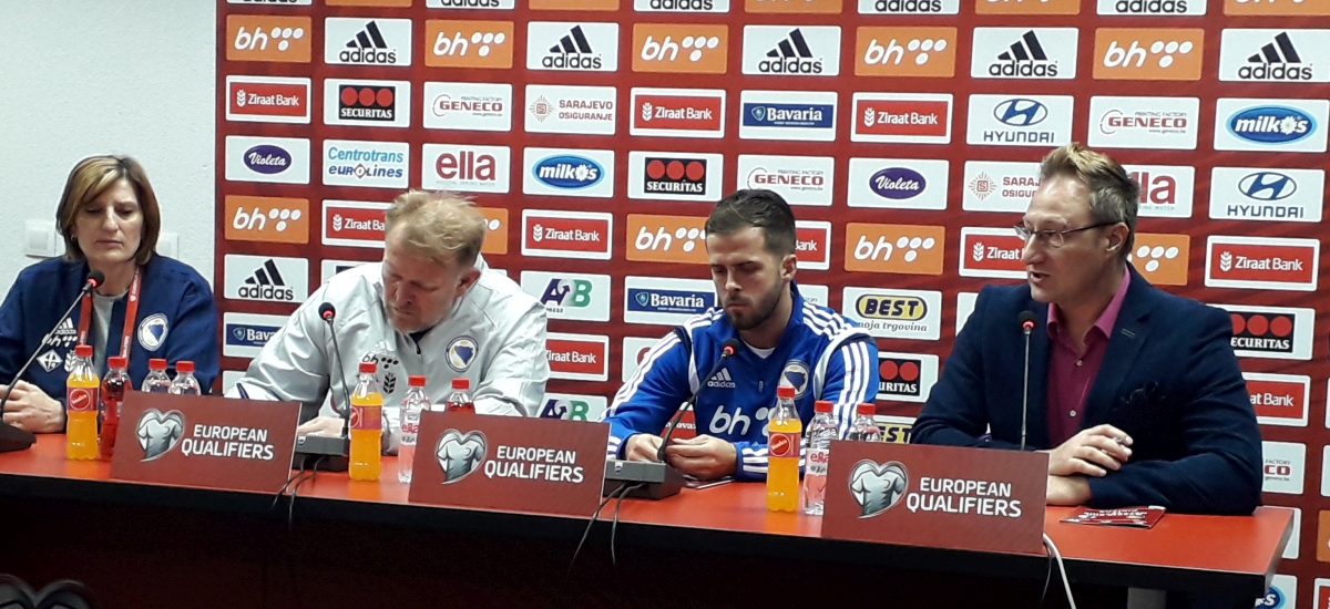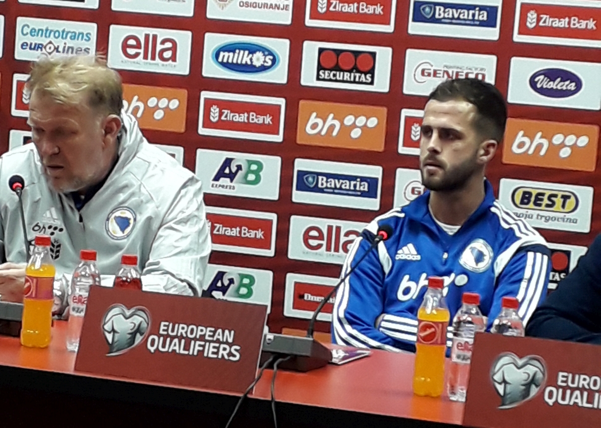 Novi kapiten reprezentacije Bosne i Hercegovine Miralem Pjanić i selektor Robert Prosinečki izašli su pred novinare prije večerašnjeg treninga te sutrašnje kvalifikacijske utakmice 7. kola za Evropsko prvenstvo 2020. godine protiv Finske na Bilinom polju.