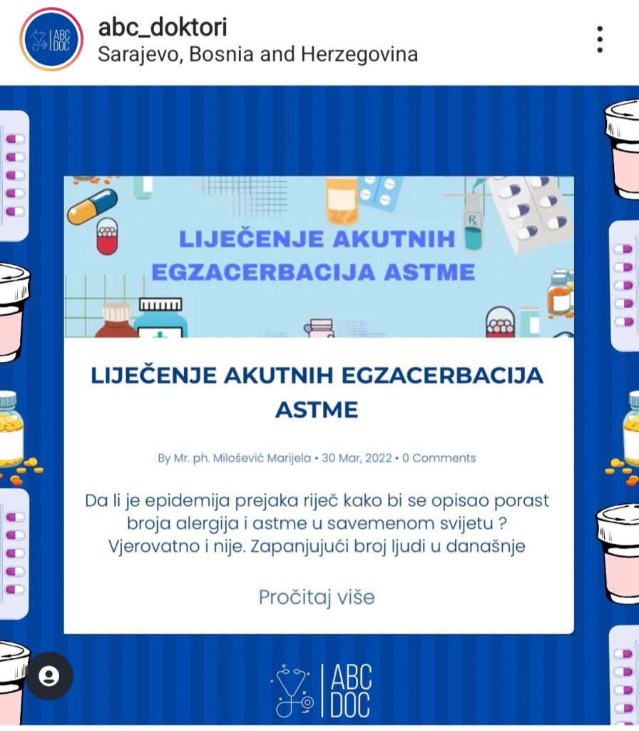 Budući da sa nama surađuju mladi i ambciozni studenti, odvažila sam se i ja da svojim znanjem  doprinesem projektu pa sam tako napisala svoj prvi članak” Liječenje akutnih egzacerbacija astme “