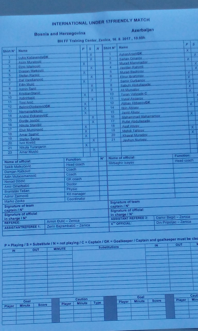 Žuti kartoni: Spahić (BiH), R. Abdullazade (Azerbejdžan).