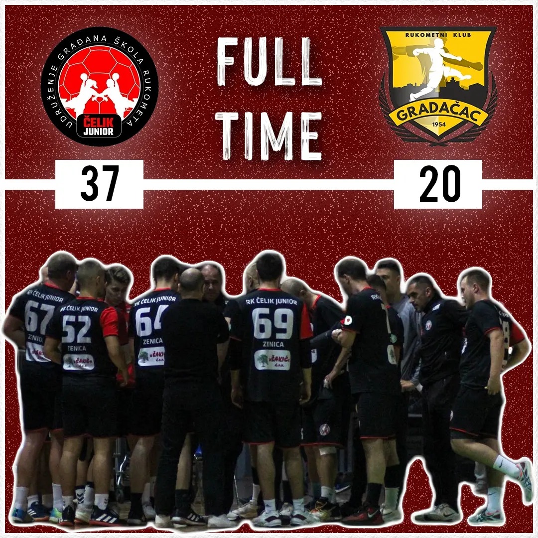 REZULTAT: ŠR „ČELIK JUNIOR“ – RK „GRADAČAC 1954“ 37:20 (17:6);