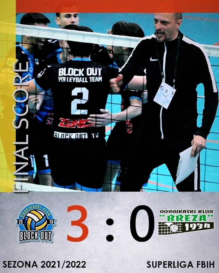Odbojkaši OK „Block Outa“, u Superligi Federacije BiH u 9. bili su domaćini ekipi OK “Breza 1934” Breza i ostvarili su treću pobjedu u prvenstvu sa ubjedljivih 3:0. Prema rasporedu sa OSFBiH, ovo je posljednje kolo u jesenjem dijelu sezone.