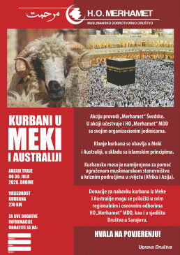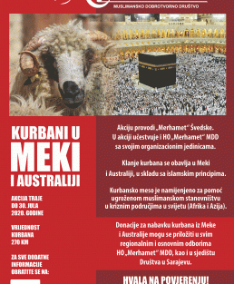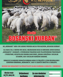 Donacije za nabavku domaćih kurbana i kurbana iz Meke i Australije se primaju u svim regionalnim i osnovnim odborima „Merhameta“ i u sjedištu Društva u Sarajevu.