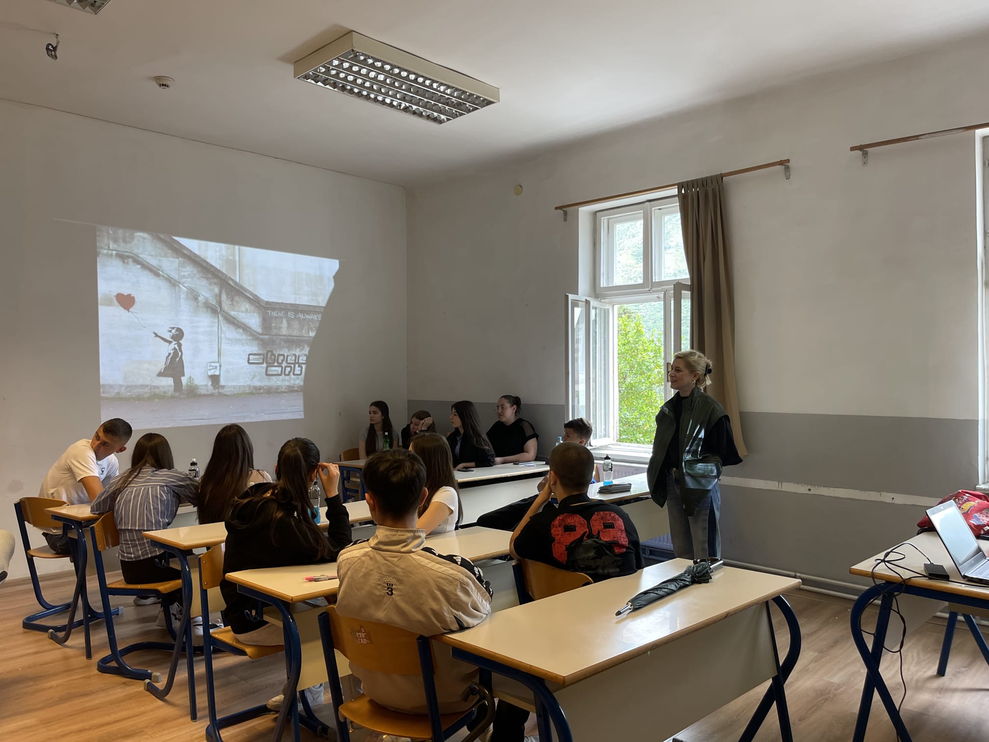 Posjetili su Srednju likovnu školu Gabrijela Jurkića, Drugu gimnaziju Mostar, JU Srednju građevinsku školu i JU Srednju ekonomsku i ugostiteljsko turističku školu te održali predavanja o povijesti i značaju street art kulture.