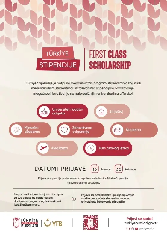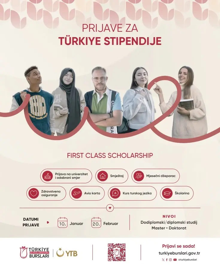 Prijave za Stipendije Türkiye, koje važe za najobuhvatniji stipendijski program na svijetu i nude mogućnost studiranja na najprestižnijim univerzitetima u našoj zemlji studentima iz svih dijelova svijeta, traju do 20. februara 2026. godine.
