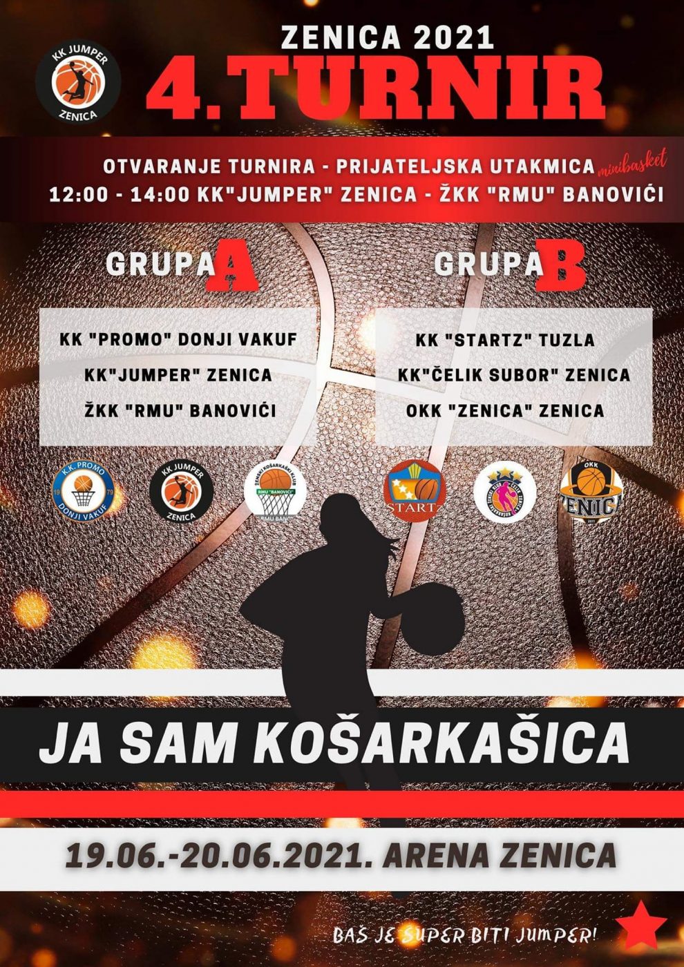 Počeo košarkaški turnir „Ja sam košarkašica“- U organizaciji KK Jumper iz Zenice u zeničkoj gradskoj Areni „Husejin Smajlović“ počeo je dvodnevni 4.turnir Zenica 2021 „Ja sam košarkašica“ za predpionirke, 2009/10.godište. Turnir će se odrati u dane 19. i 20.6.2021. godine.
