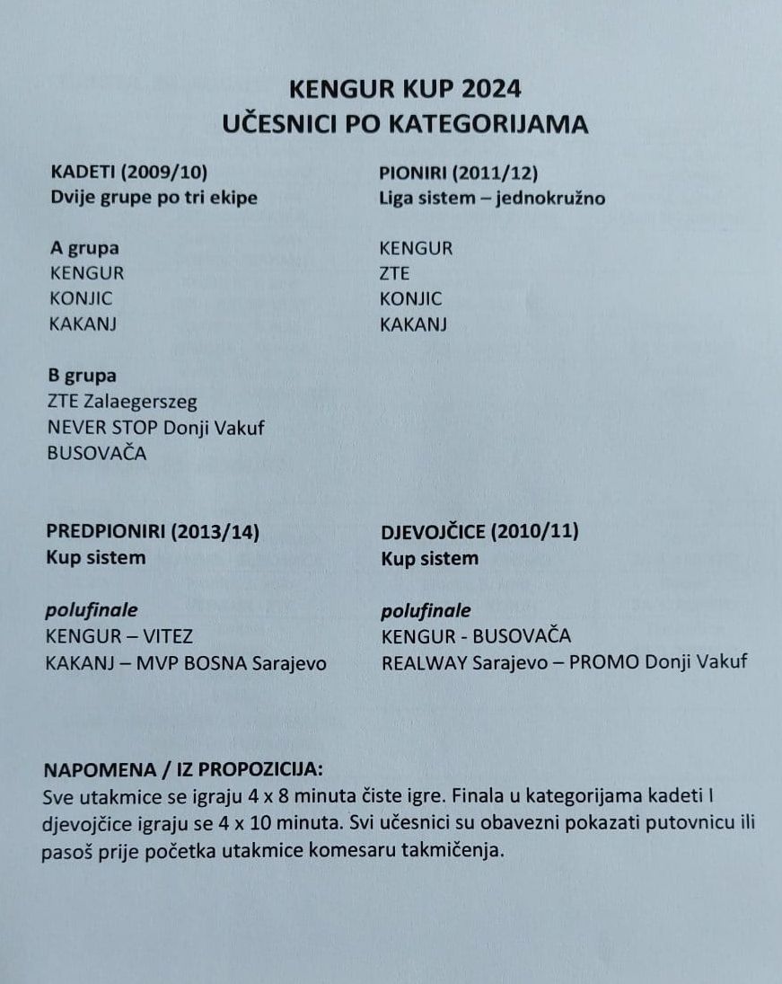Počinje 26. Međunarodni košarkaški turnir “KENGUR KUP 2024”- U gradskoj Areni “Husejin Smajlović” ove subote počinje 26. izdanje međunarodnog košarkaškog turnira “KENGUR KUP”.