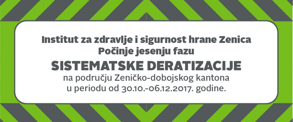 Deratizaciju, prema Naredbi Kantonalnog Ministarstva zdravstva na području ovog kantona, po utvrđenom rasporedu, provodi Institut za zdravlje i sigurnost hrane Zenica.