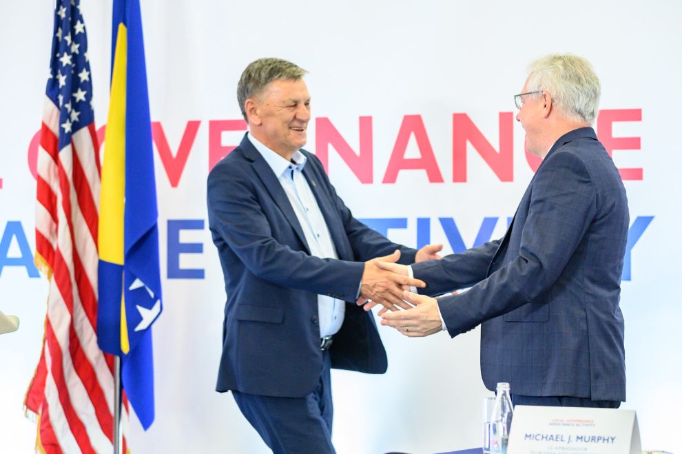 Njegova ekselencija ambasador Sjedinjenih Američkih Država u Bosni i Hercegovini Michael J. Murphy i gradonačelnici i načelnici odabranih općina su ovom prilikom potpisali zajedničke izjave.
