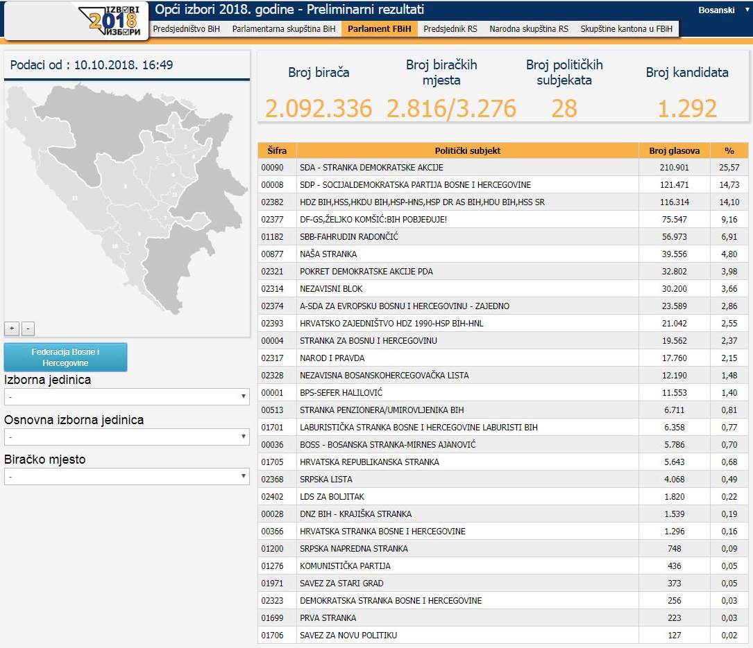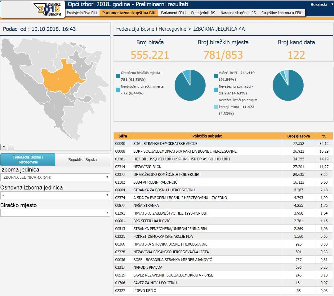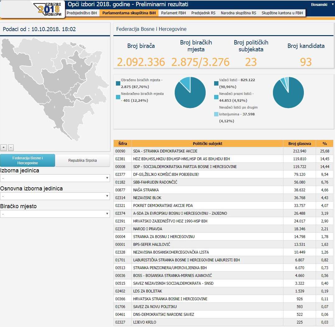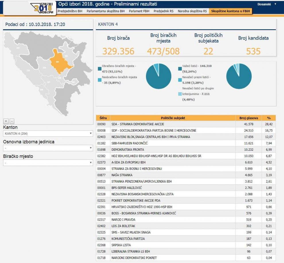 Podaci: CIK ažurirao bazu izbrojanih glasova za nivoe BiH, FBiH i ZDK – Zenicablog vam donosi najnovije ažuriranje podataka CIK-a, o rezultatima kandidata i stranaka na osnovu glasova građana Zenice i ZDK, za Predsjedništvo BiH, Zastupničke domove Parlamenata FBiH i BiH, te Skupštine ZDK. Podaci za više nivoe prezentirani su u ukupnom iznosu za FBiH, te za izboprnu jedinicu u kojoj se nalazi Zenica.
