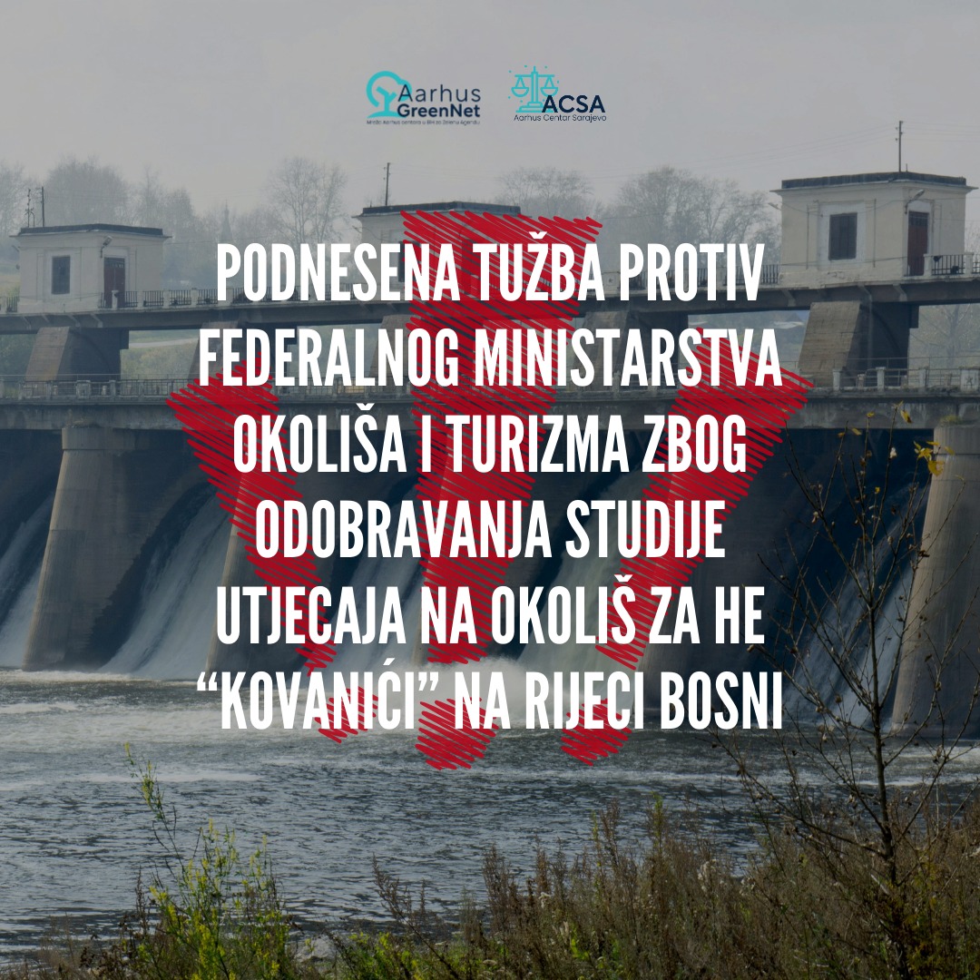 Aarhus centar u Bosni i Hercegovini podnio je tužbu Kantonalnom sudu u Sarajevu protiv Federalnog ministarstva okoliša i turizma zbog nepravilnosti u procesu odobravanja Studije utjecaja na okoliš za planiranu hidroelektranu “Kovanići” na rijeci Bosni (snage 12,2 MW) na teritoriji Grada Zenica.