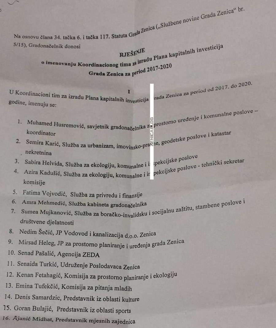 Pogledajte imena članova Koordinacionog tima za kapitalne investicije Grada Zenica – Gradonačelnik Zenice Fuad Kasumović imenovao je nedavno Koordinacioni tim za izradu plana kapitalnih investicija u Gradu Zenica u naredne četiri godine. Pogledajte imena članova Koordinacionog tima, kao i odakle, iz kojih službi i organizacija, oni dolaze.