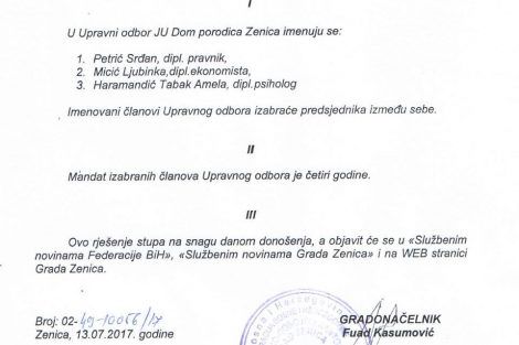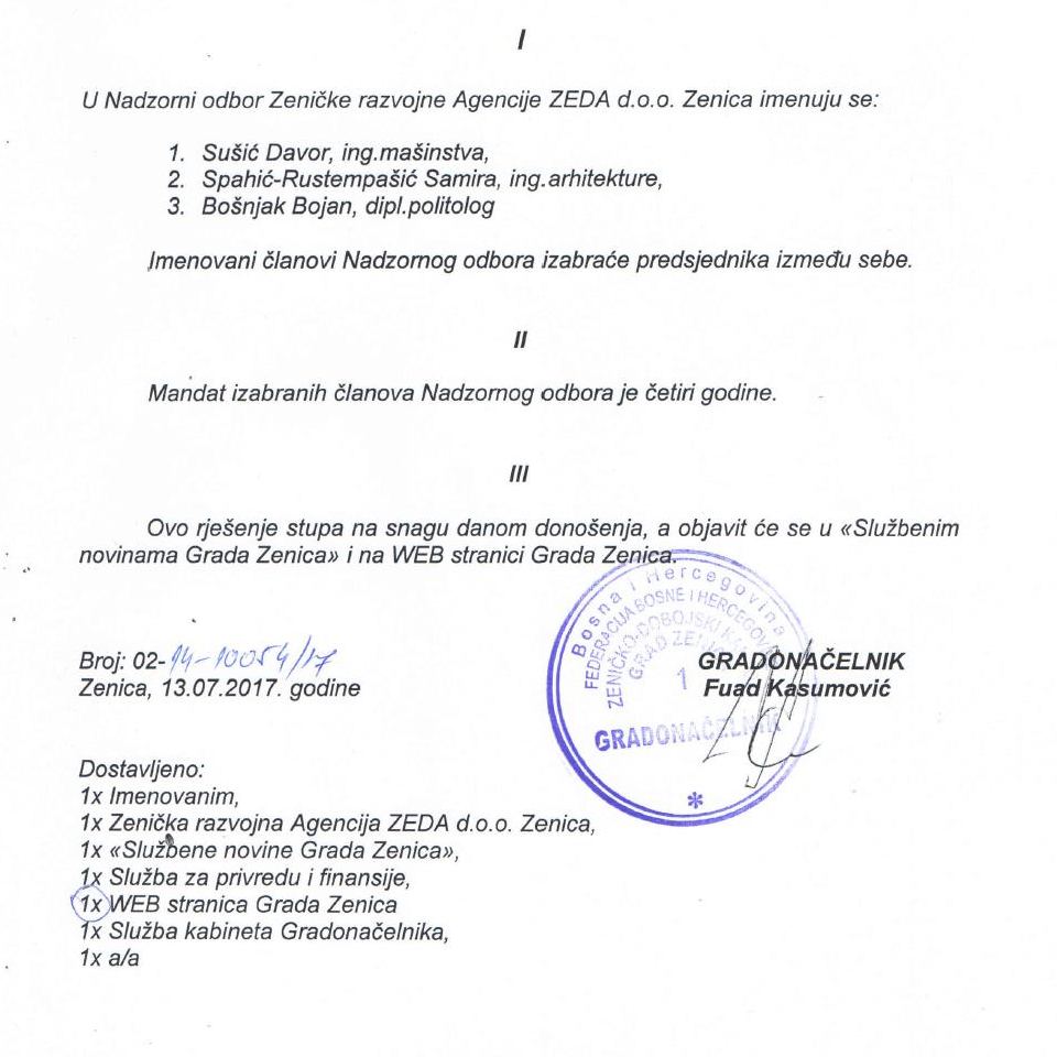 Pogledajte imena novoimenovanih članova UO i NO, te gradonačelnikova rješenja:
