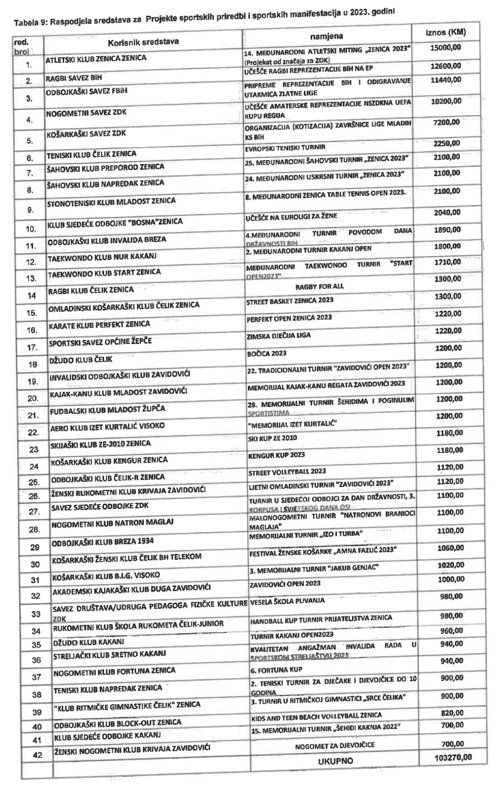 Cjelokupan raspored sredstava transparentno je objavljen u višestrukim tabelama, koje donosimo u nastavku.