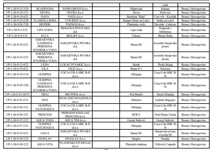 Ova lista je izrazito važna I s obzirom na to da su nedavno u pojedinim vodama u FBiH pronađene bakterije ešerihija koli, pseudomonas i streptokok.
