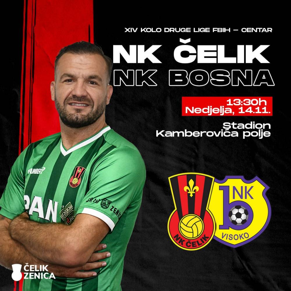 U ovoj ligi nastupa bivši Premijerligaš, NK Čelik, koji je ove nedjelje, 14.11.2021.godine od 13,30 sati, domaćin, u derbiju kola, ekipi visočke Bosne, uokviru 14.kola. Utakmica će se igrati na Kamberovića polju, na „A“ terenu, zbog utakmica reprezentacije BiH u subotu i utorak na Bilinom polju.