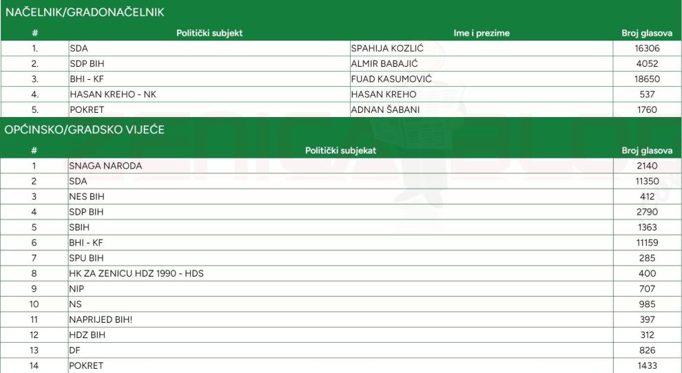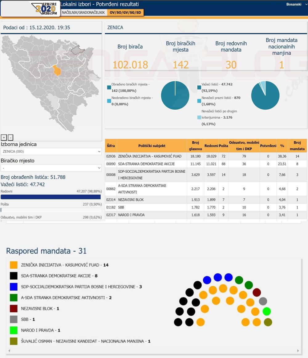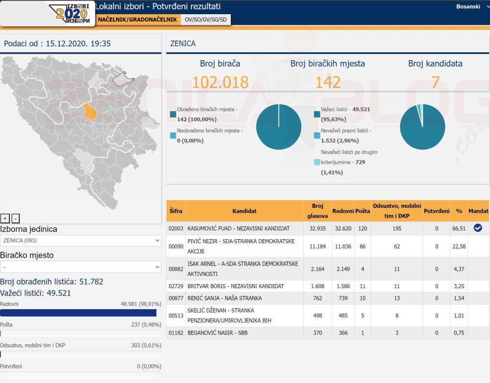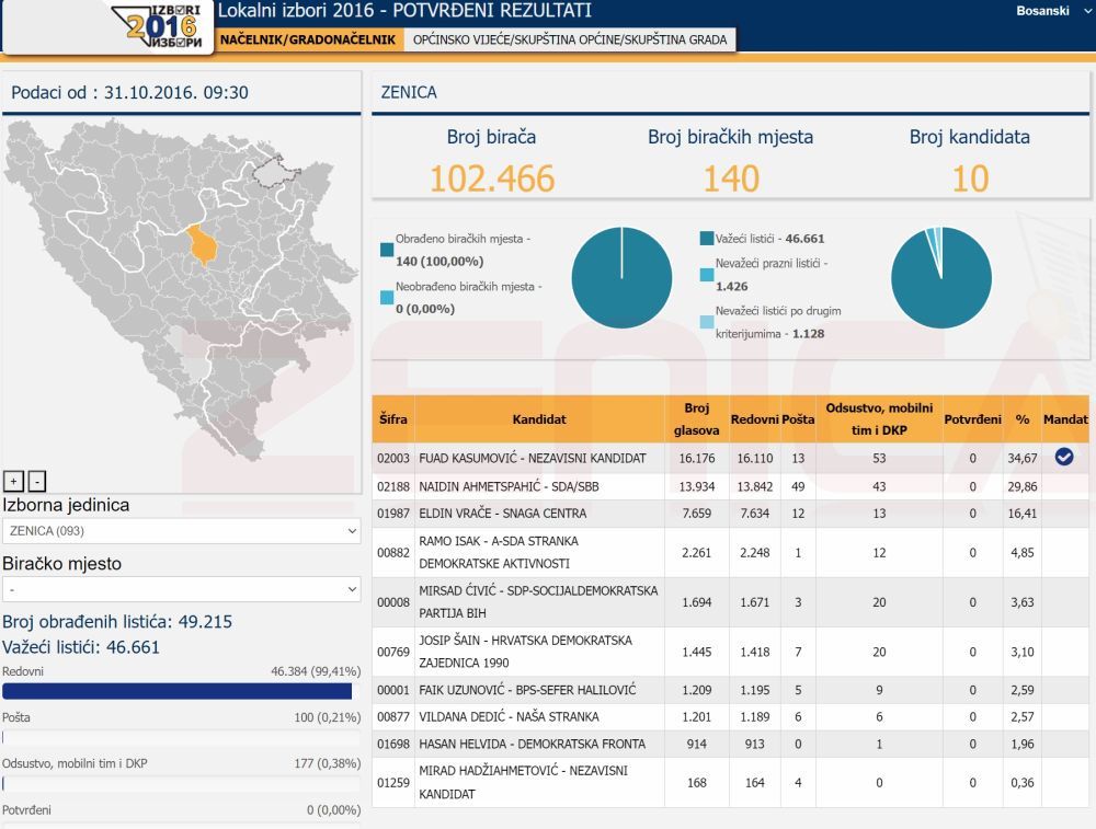 Podaci kojima raspolaže Zenicablog govore o prebrojanih 41.305 glasova za gradonačelnika Zenice.