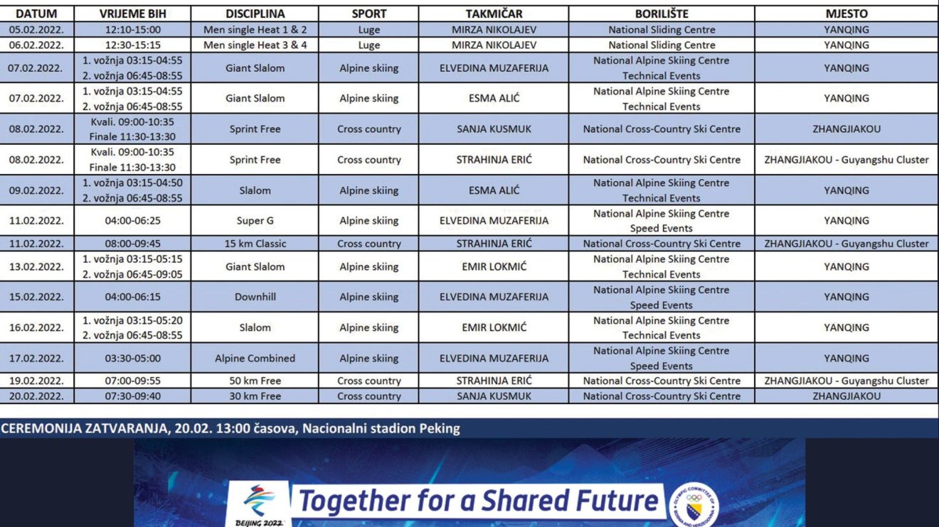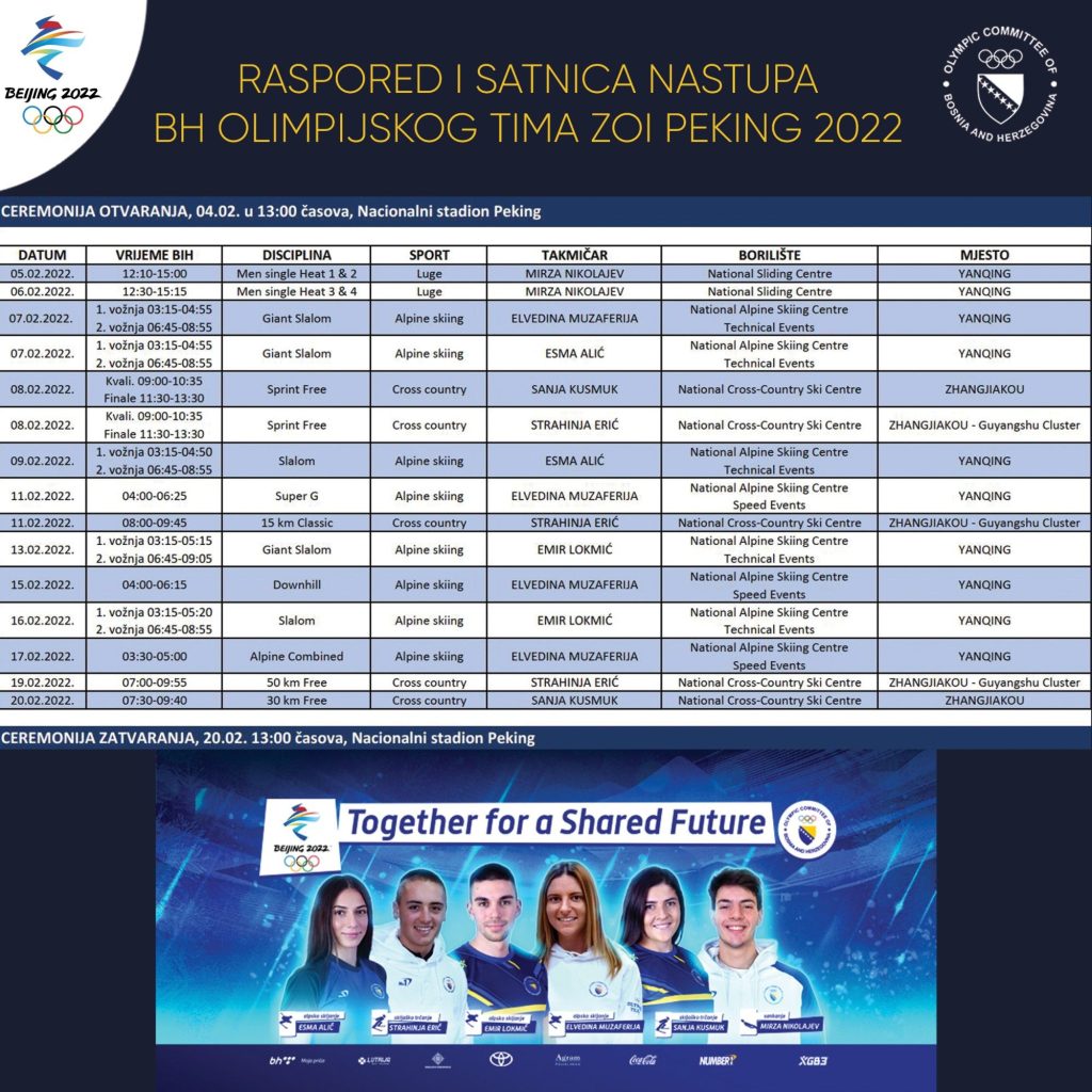 U petak 4. februara 2022. godine, sa početkom u 13 sati po našem vremenu, u Pekingu će početi svečana cermonija otvaranja XXIV Zimskih olimpijskih igara. Peking će ući u historiju kao prvi grad domaćin i Ljetnih i Zimskih olimpijskih igara.