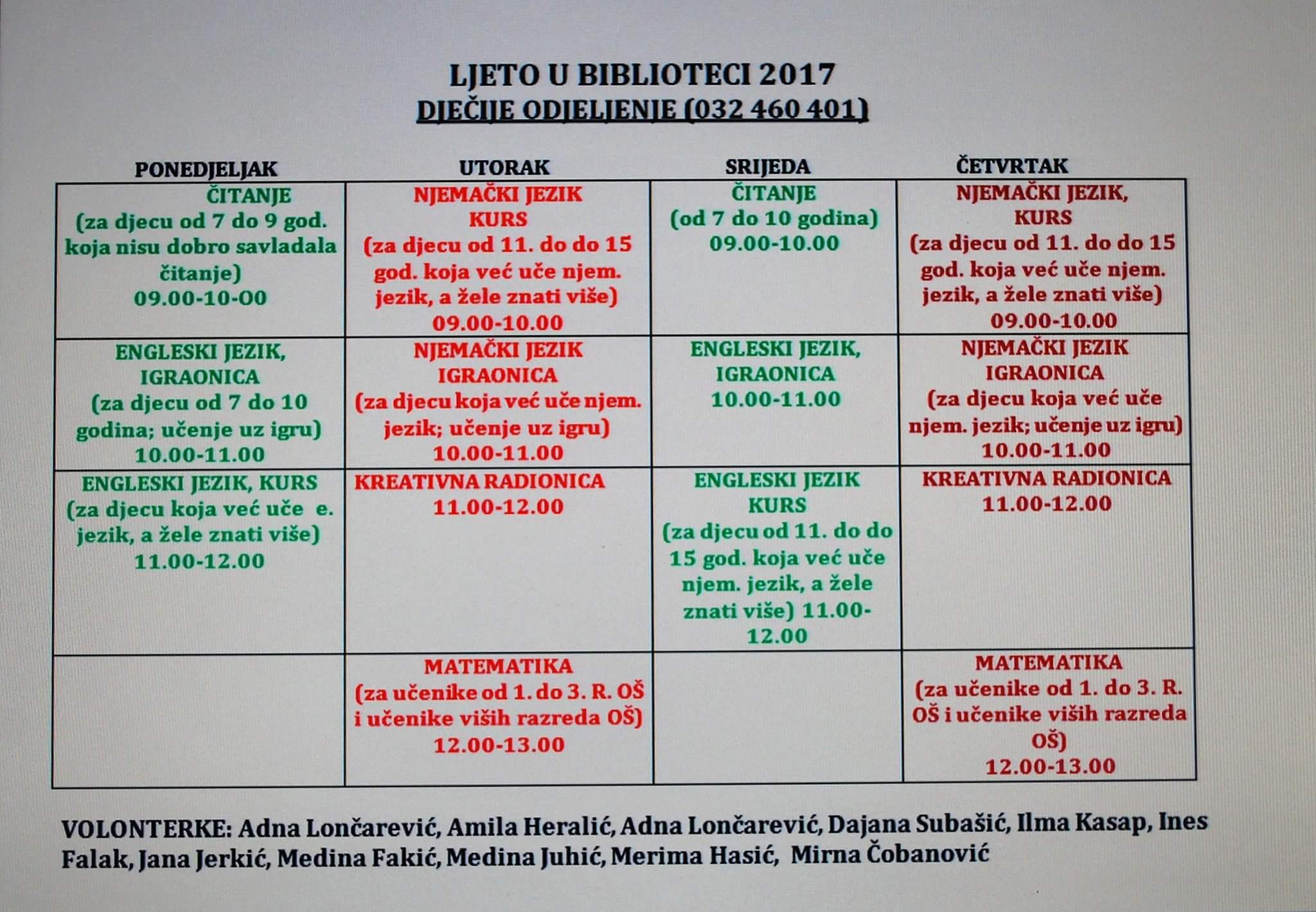 Pogledajte sadržaje i aktivnosti Ljeta u biblioteci Zenica 2017 – podatke ustupio menadžment Opće biblioteke