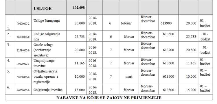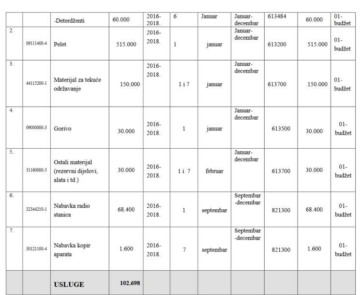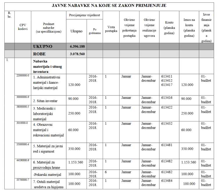 U skladu s članom 17. Zakona o javnim nabavkama i Odluke o utvrđivanju godišnjih finansijskih planova i programa kapitalnih ulaganja za nabavku, rekonstrukciju i izgradnju objekata i nabavku opreme za zavode ovog tipa, predložena je dopuna prema nekoliko pozicija.