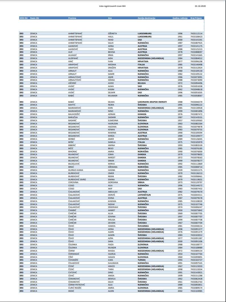 POGLEDAJTE U GALERIJI spisak Zeničana prijavljenih za glasanje van granica BIH