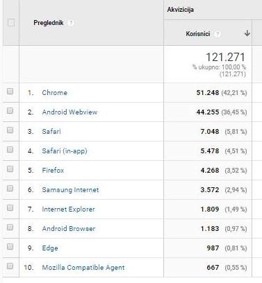 Najčešće korišteni browser je Chrome, a možete pogledati čak i u kojim rezolucijama ekrana nas “čitaju”.