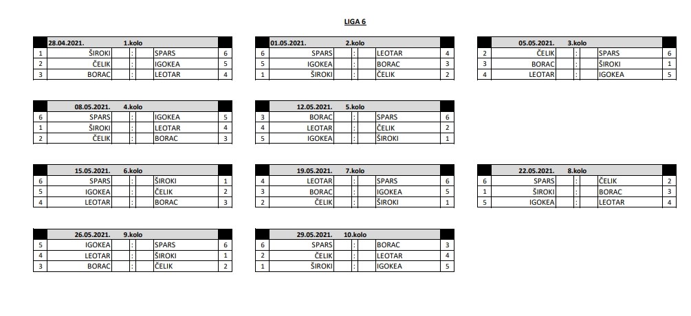 U prostorijama Košarkaškog saveza Bosne i Hercegovine danas je obavljeno izvlačenje parova Lige 6. Na osnovu zahtjeva klubova koji nastupaju u ABA 2 ligi, a uz saglasnost klubova učesnica Lige 6, početak završnice prvenstva Liga 6 počinje 28. aprila 2021.
