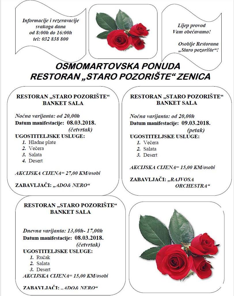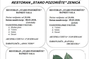 III  Noćna varijanta: od 20,00h Datum manifestacije:  09.03.2018. (petak) Mjesto: Restoran „Staro pozorište“- banket sala