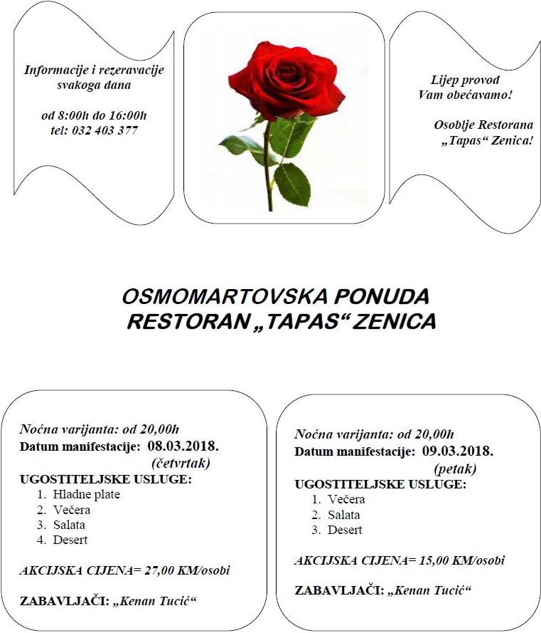 Pogledajte tri varijante Osmomartovske ponude Restorana „Staro pozorište“ i Restorana „Tapas“
