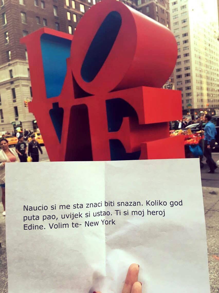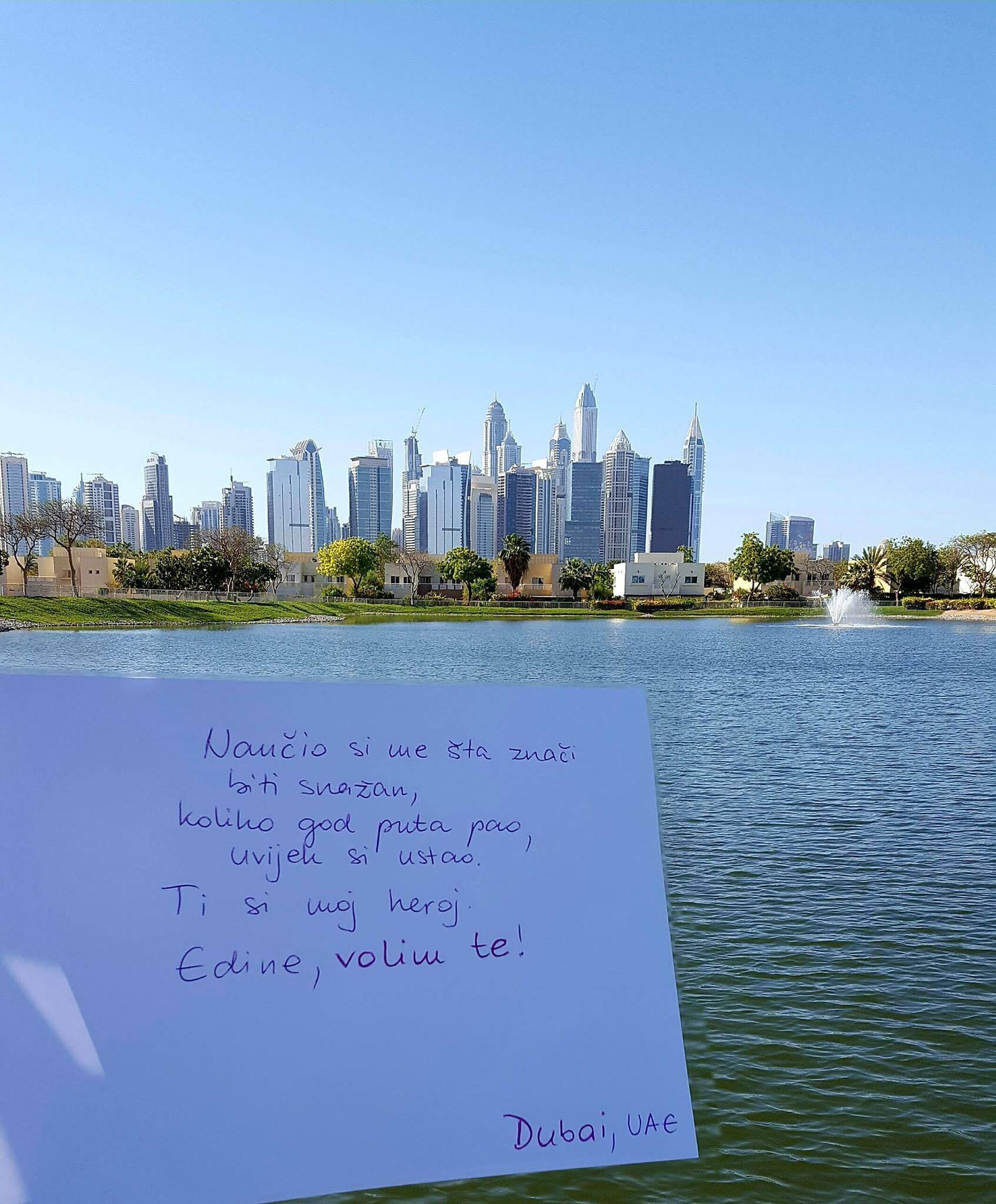 -HVALA svim mojim prijateljima i divnim osobama ŠIROM SVIJETA, koje su podržale našu ljubav i razumjele Edinovu borbu te se potrudile da slike budu što originalnije. Sa toliko radosti sam listala slike koje su dolazile svakodnevno, ali ništa se ne može porediti sa osjećajem kada je video konačno bio završen i kad sam ga pokazala osobi kojoj je namijenjen. Željela sam da cijeli svijet zna koliko sam ponosna na Edina i uspjela sam, napisala je Ana.