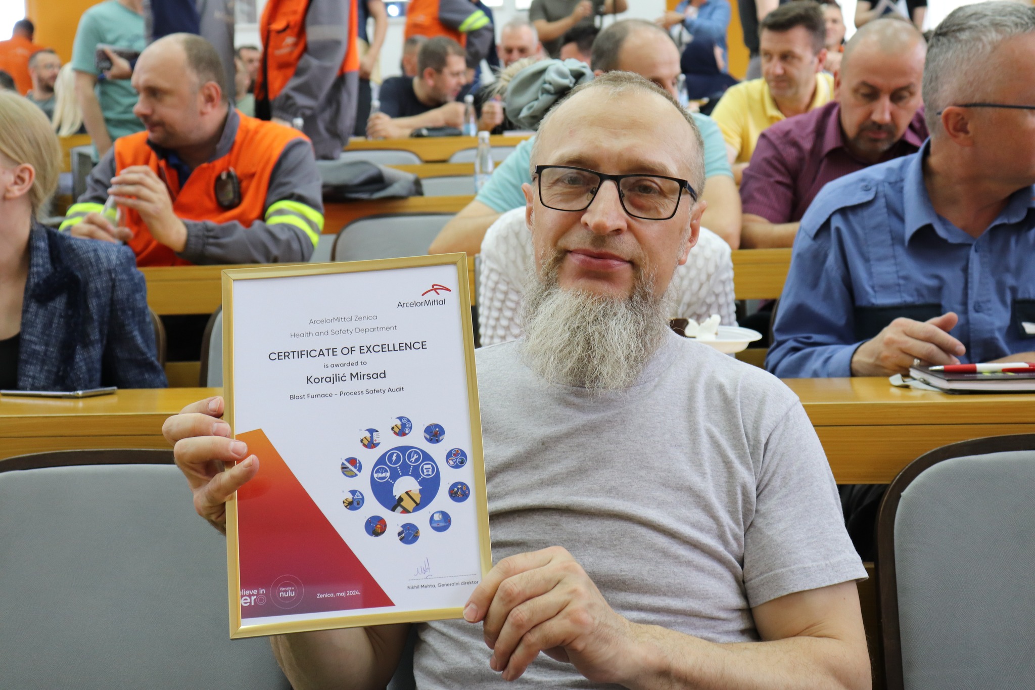 Jučer , 29. maja 2024., održana je svečana ceremonija nagrađivanja tima Visoke peći u ArcelorMittalu Zenica, povodom postignuća najboljih rezultata za sprovedeni Safety Process Management audit, koji je obuhvatio 11 jedinica ArcelorMittal Grupacije. ArcelorMittal Zenica, proizvodni pogon Visoke peći, ponosno zauzima prvo mjesto na nivou AM Grupacije, zahvaljujući svom predanom radu i izvrsnosti. Kako su i predstavnici tima nekoliko puta istakli – ovaj tim voli ono što radi.