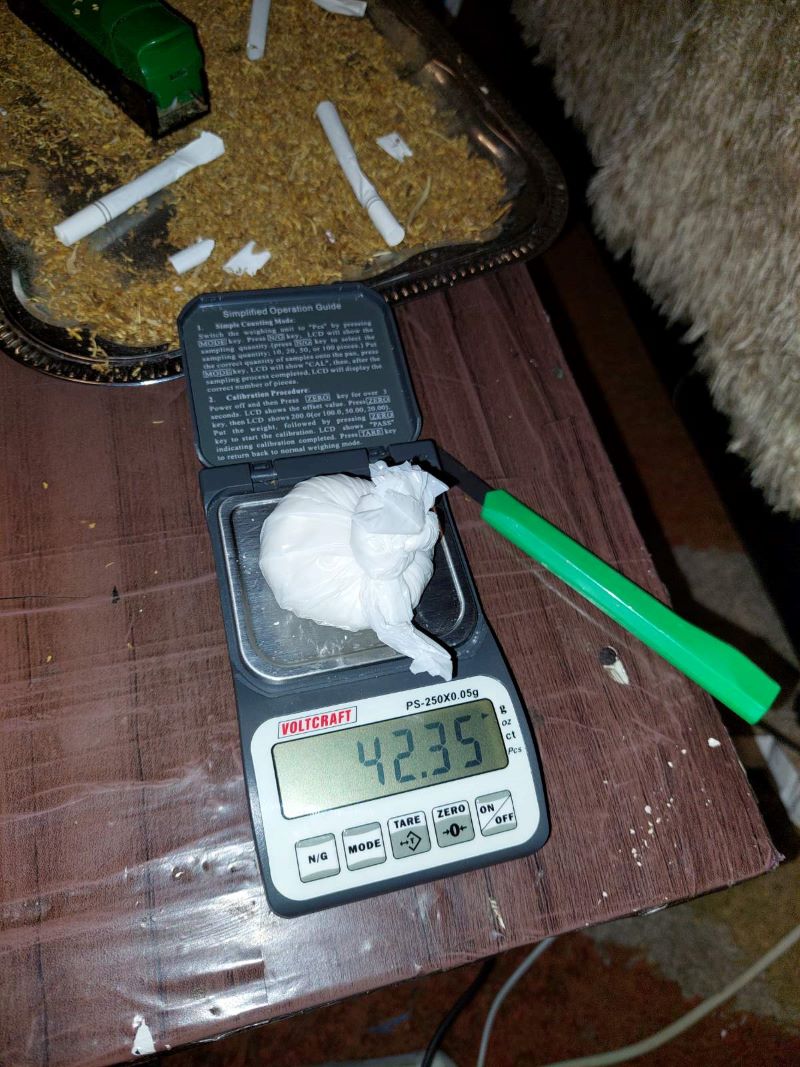 Izvršenim pretresom kuće i pomoćnih objekata koje koristi lice M.A., rođeno 1982. godine, iz Visokog, u mjestu Kološići, a postupajući po naredbi Općinskog suda u Visokom, policijski službenici su pronašli sadržaj praškaste materije koja svojim izgledom asocira na opojnu drogu, dvije digitalne vage za precizna mjerenja i jednu automatsku pušku sa dva pripadajuća okvira bez municije. Sporna materija i oružje su fotografisani, izuzeti i bit će predmet potrebnih vještačenja, te će biti korišteni kao dokazni materijal u daljnjem postupku, dok je lice M.A. u bjekstvu i za istim se intenzivno traga i radi na njegovom lociranju i lišenju slobode.