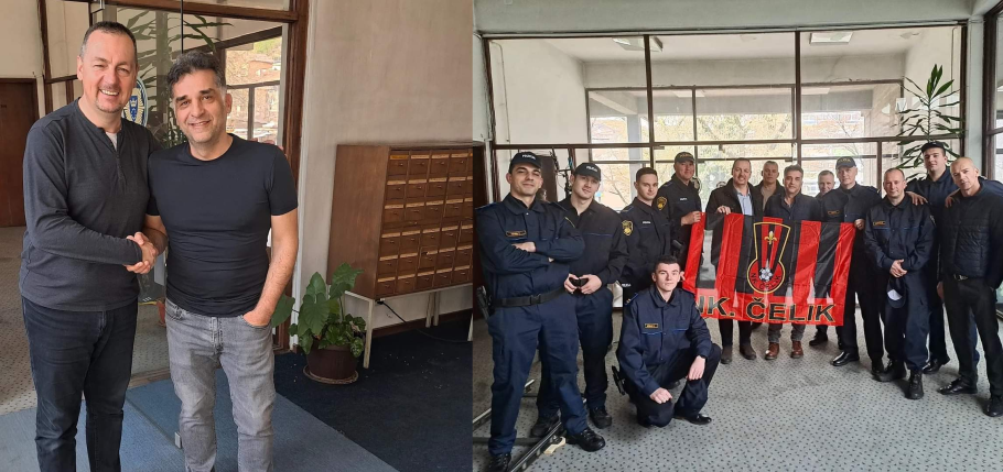 Takođe, sam Danisu poklonio i zastavu našeg voljenog kluba “ČELIK” koji je takođe jedan od simbola Zenice. Sa zastavom Čelika smo se zajedno fotografisali sa mojim sugrađanima statistima serije iz Zenice.