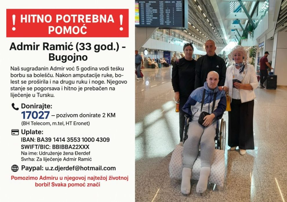 Humanitarno udruženje iz Bugojna pokrenulo je apel za prikupljanje sredstava za liječenje Admira Ramića (33), koji već pet godina vodi tešku borbu s bolešću.