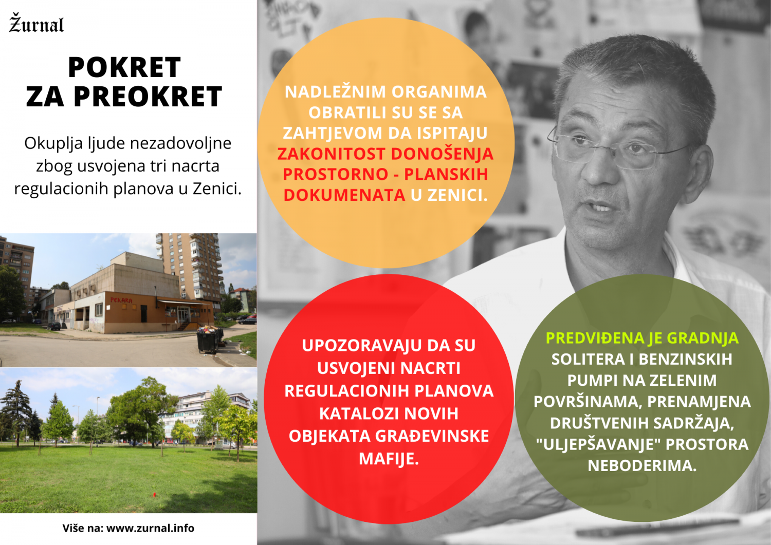 Soliter na mjestu gdje je danas gradski park, rušenje kultnog kina na čijem mjestu bi također trebala biti zgrada, benzinska pumpa na zelenoj površini u blizini kružnog toka, „uljepšavanje“ prostora gradnjom nebodera – ovo su samo neki od primjera iz spornih nacrta zeničkih regulacionih planova. Ipak, iz neformalne grupe „Pokret za preokret“ ističu da je problematika prostornog planiranja i urbanizma, kako u Zenici, tako i u cijeloj BiH, mnogo šira i ozbiljnija.
