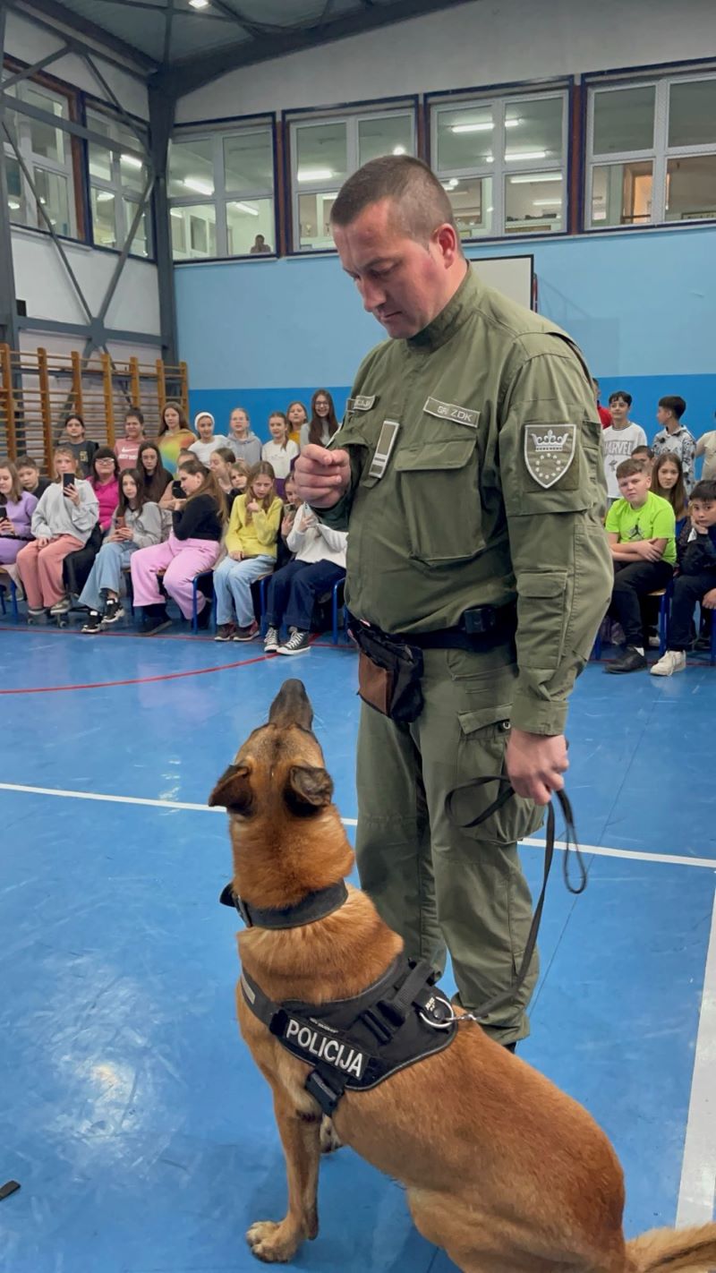 U nastavku realizacije planiranih aktivnosti održano je predavanje i radionica sa učenicima VI razreda Osnovne škole “Rešad Kadić” u Tešnju, kojom prilikom je tim Specijalne policijske jedinice sa službenim psom demonstrirao pokaznu vježbu traženja i pronalaska otuđenog predmeta. Vježba je uz veliko ushićenje propraćena od strane učenika, a svoju zainteresovanost za određena sigurnosna pitanja pokazali su kroz veliki broj njihovih pitanja. Nadalje, kroz zanimljive prezentacije učenici su upoznati sa izazovima policijskog zanimanja, radom policije, vrstama policijskih dužnosti i policijskih uniformi, te drugim oblastima bitnim za ovu vrstu edukacije. Takođe je tokom predavanja istaknuta važnost saradnje policije sa građanima, a posebno sa mladima, koji su uvijek u centru svih proaktivnih aktivnosti koje policija poduzima na unapređenju njihove sigurnosti.