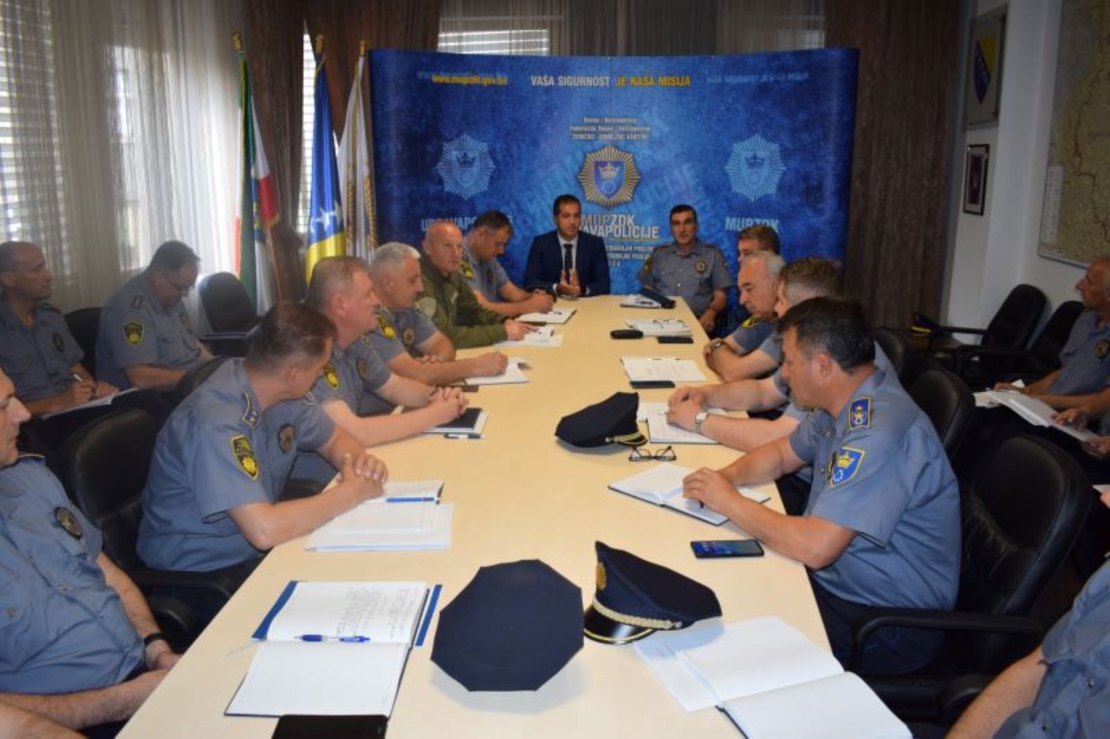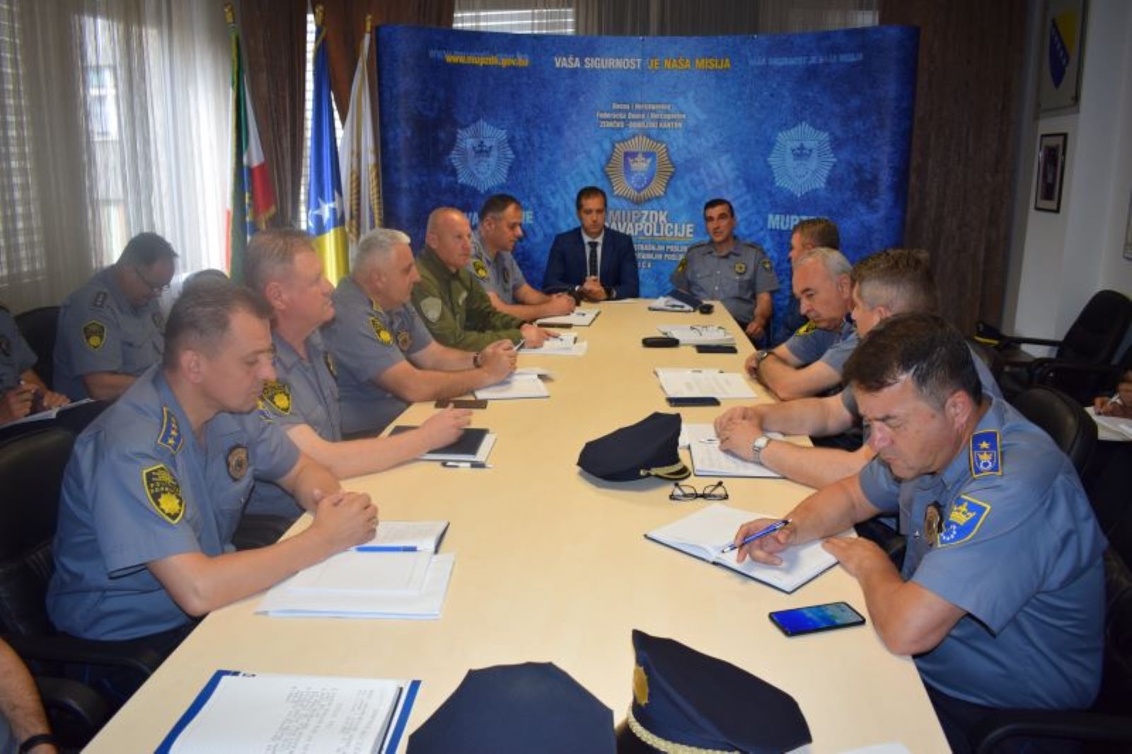 Danas, 23.05.2024. godine, u cilju unapređenja rada i funkcionisanja Uprave policije, te koordiniranja u postupanju organizacionih jedinica, policijski komesar Uprave policije Ministarstva unutrašnjih poslova Zeničko-Dobojskog kantona Admir Gazić je održao radni sastanak na kojem su prisustvovali načelnici Sektora uniformisane policije i Sektora kriminalističke policije, načelnici policijskih uprava i komandiri policijskih stanica.