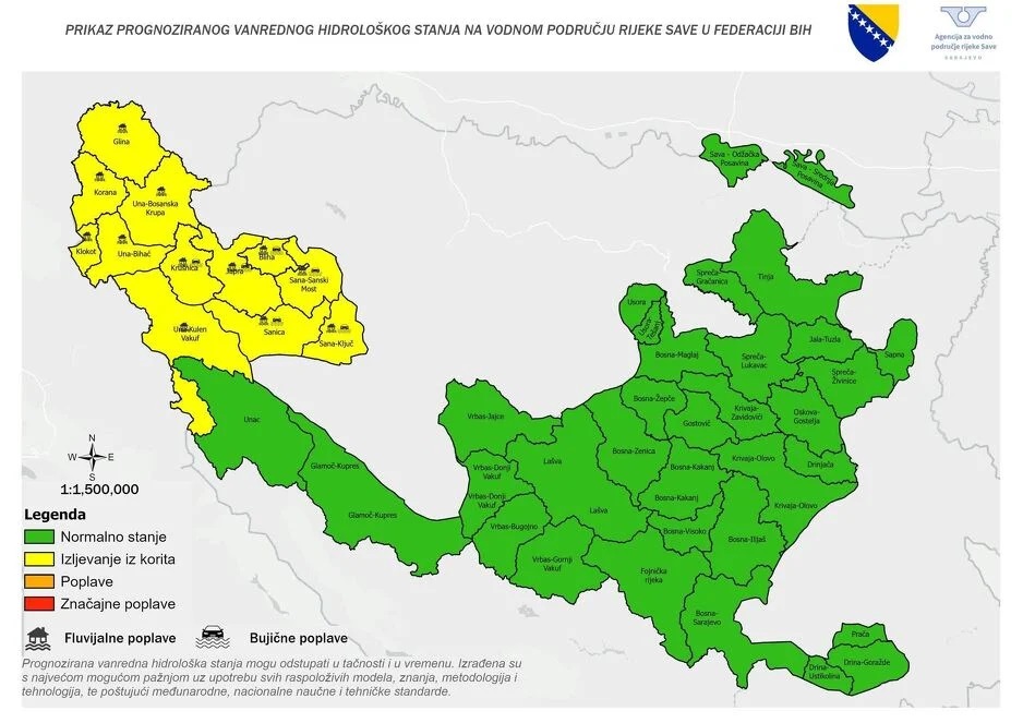S druge strane, iz Agencije za vodno područje rijeke Save su 2. oktobra na svojoj internetskoj stranici objavili da su od 3. do 4. oktobra moguće poplave na području Bihaća, Bosanske Krupe, Sanskog Mosta i Ključa. Ovo upozorenje je dostavljeno medijima, kao i svako prethodno upozorenje Agencije za vodno područje rijeke Save.