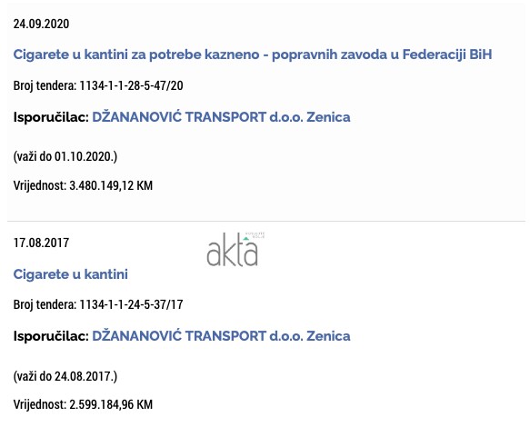 Cigarete se nabavljaju za kazneno-popravne zavode (KPZ) u Orašju, Zenici, Mostaru, Busovači, Sarajevu, Bihaću, Orašju, a ugovor se dodjeljuje na period od dvije godine jednom ponuđaču putem e-aukcije.