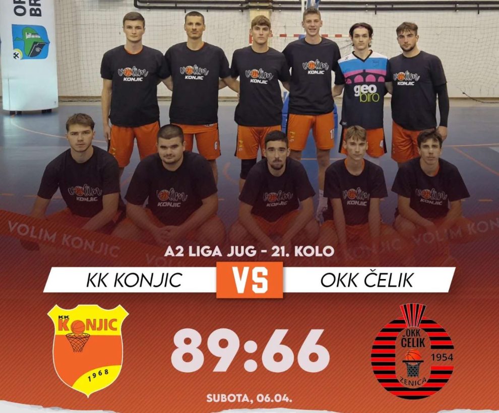 Uokviru 21.kola A2 lige – regija Jug, sinoć, 06.4.2024.godine, od 20,30 sati u SD Konjic, odigrana je prvenstvena košarkaška utakmica između ekipe KK „Konjic“ i OKK “Čelik” WWIN iz Zenice, pred oko 100 gledalaca.