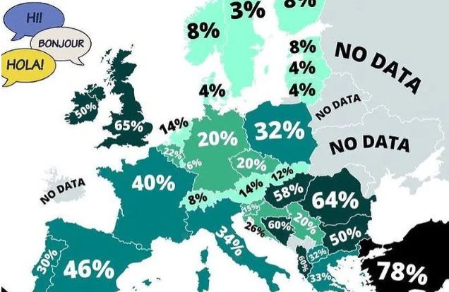 Zanimljivo da komšijski narodi daleko bolje od nas kotiraju na ovoj listi. Tako prema podacima koje je sproveo portal Landgeist, samo 20 posto Srba ne zna neki jezik, dok se kod Hrvata taj broj kreće oko 26 posto.
