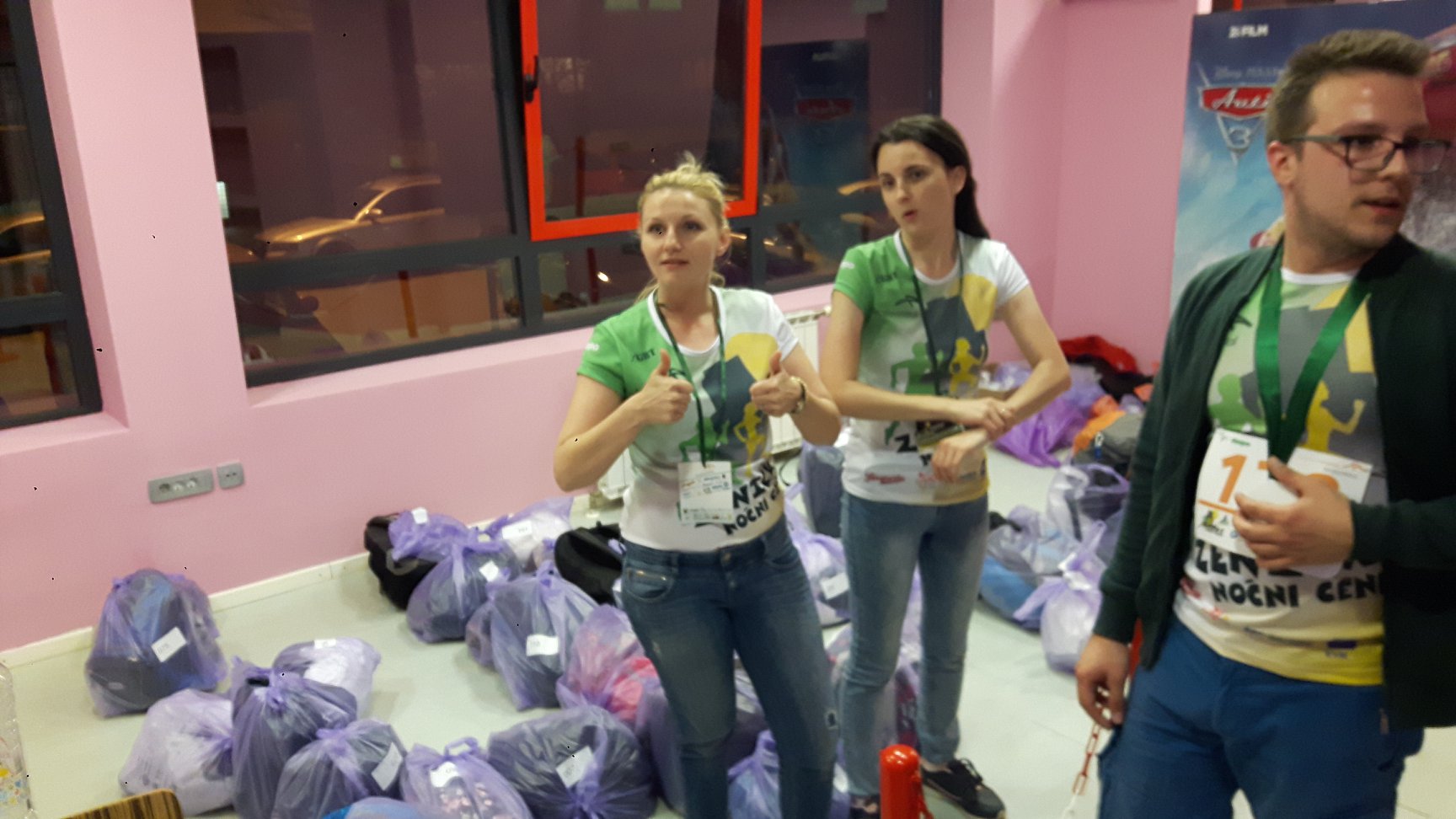 Krenimo redom , prijavni centar na čelu sa Amerom je funkcionirao bezprijekorno uz obilje šale i pozitivnih misli , a uz njega ekipa koja je dijelila pakete u najmanju ruku bila je fantastična , ne bi ni trčali ostali bi s njima cijeli dan . Startni paket zaista odličan , sa posebnim naglaskom na majicu utrke i finišersku medalju , i na destke sitnica poput popusta u restoranima , ulaznica za kino itd .