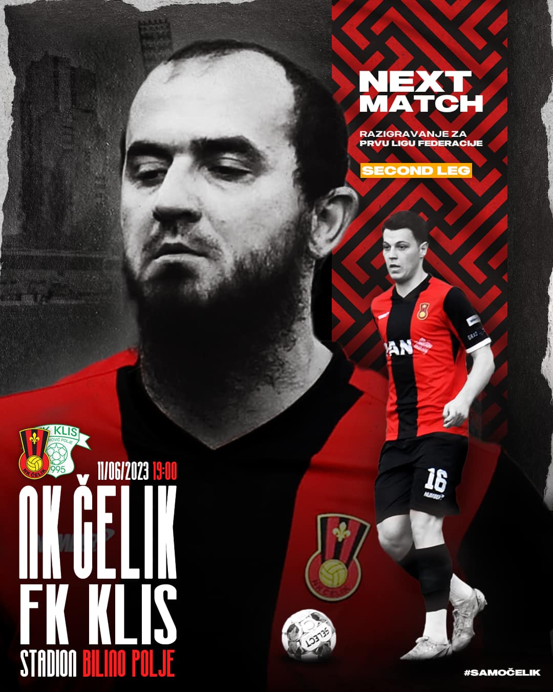 Sastaju se NK Čelik i NK Klis iz Buturović polja kod Konjica. Da podsjetimo, rezultat prve utakmice, odigrane u Konjicu prije tri dana (srijeda, 7. juni) bio je 1:1 (0:1), strijelac izjednačujućeg gola za „Crno-crvene“ bio je Selim Žuna u 55′, a strijelac za Klis bio je Muamer Vila u 42′. Čelik je imao veliku podršku svojih navijača u Konjicu.